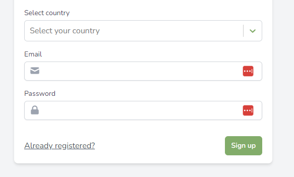 “Select country”で“🇯🇵 Japan”を選択、メールアドレス、パスワードを設定します。