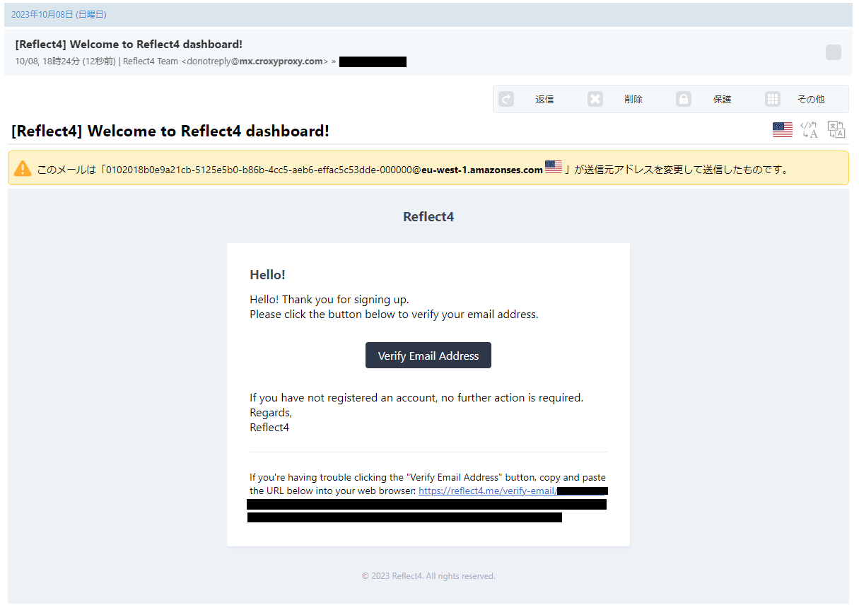 その後、登録したメールアドレスに確認メールが届くので“Verify Email Address”ボタンを押して認証します。