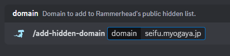 コマンドは /add-hidden-domain domain:追加したいドメイン です。